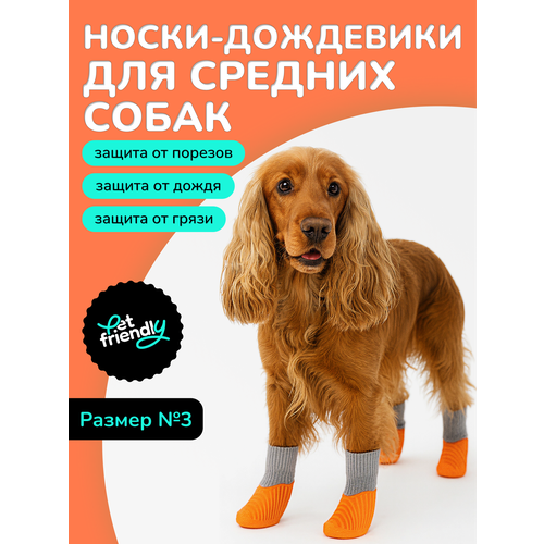 Обувь для собак средних пород с защитой от реагентов и соли, прорезиненные носки для собак с фиксаторами, размер 3 Pet friendly