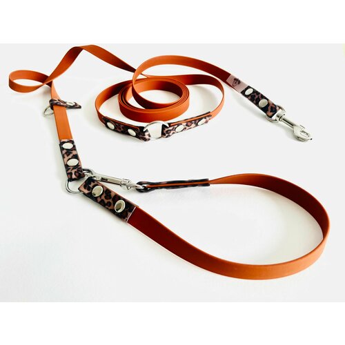 Перестежка для собак коричневая с леопардовым принтом из Биотана , 15 мм ширина , 3 м длина. Ykitoo