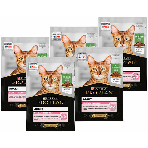 PRO PLAN DELICATE DIGESTION для взрослых кошек для чувствител пищевар с ягненком в соусе пауч 85 гр 85 гр х 5 шт Pro Plan