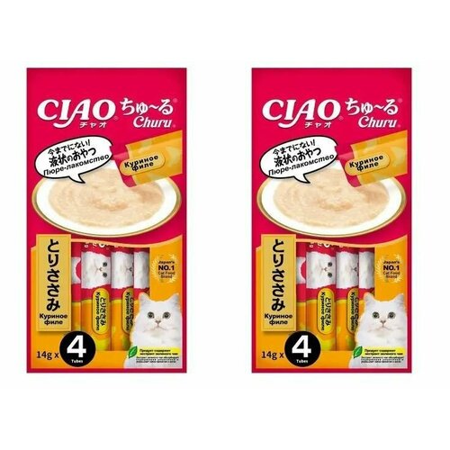 INABA Лакомство-пюре для кошек, Ciao Churu, лосось и куриное филе, 14 г х 4 шт, 2 уп Inaba
