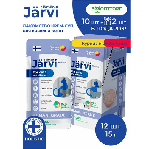 Лакомство Jarvi для кошек и котят крем-суп с мясом курицы и филе тунца 15 г х 12 шт.