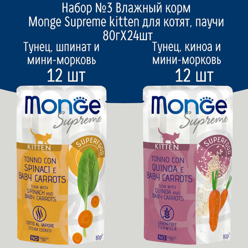 Набор №3 Влажный корм для котят Monge Supreme kitten, паучи, 24 шт по 80гр (2 вкуса по 12шт)