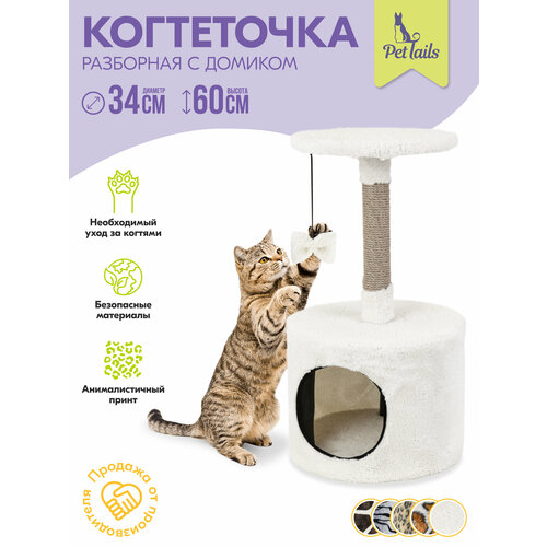 Домик-когтеточка эмма "PetTails" разборный, круглый, 34х34хh60см (мех, джут) ангора