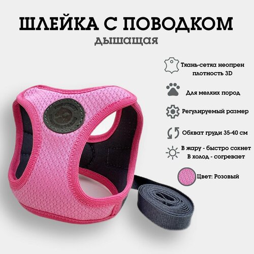 Шлейка жилетка, сетка трехслойная, регулируемая, с поводком, для собак мелких пород и кошек ZOOSTREET