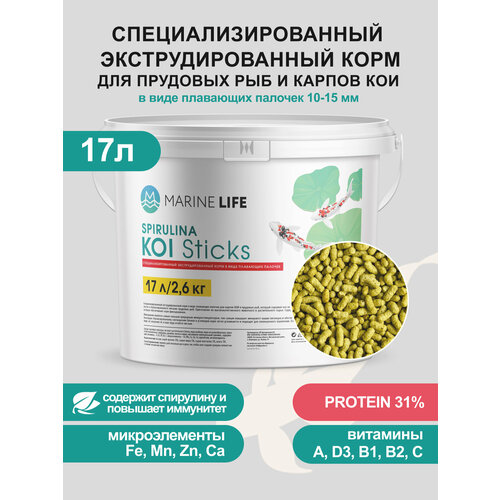 Корм Marine Life "KOI Sticks", для прудовой рыбы, карпов КОИ, плавающие палочки, 2,6кг