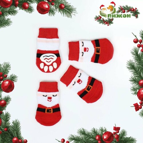 Носки нескользящие для животных "Дед Мороз", размер L (3,5/5 * 9 см), набор 4 шт Пижон
