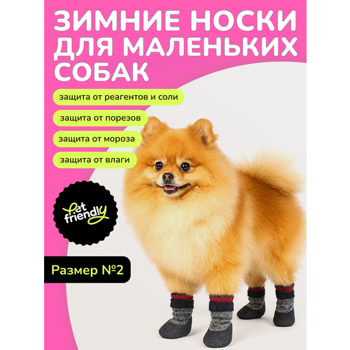 Обувь для собак мелких пород с защитой от реагентов и соли, прорезиненные носки для собак с фиксаторами, размер 2 Pet friendly