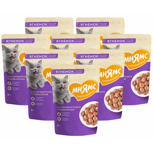 Мнямс для взрослых кошек для комфортного пищеварения с ягненком в соусе пауч 85 гр 85 гр х 8 шт