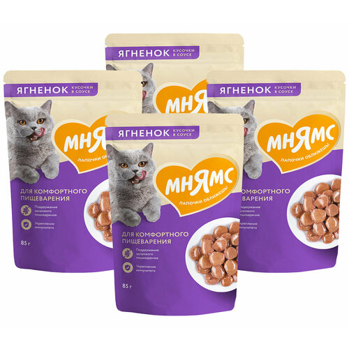 Мнямс для взрослых кошек для комфортного пищеварения с ягненком в соусе пауч 85 гр 85 гр х 4 шт