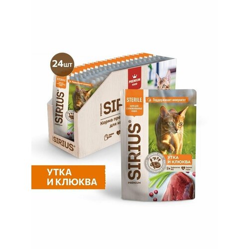 Корм консервированный для стерилизованных кошек. Кусочки в соусе "Утка с клюквой" ТМ SIRIUS 85г*24шт. Sirius