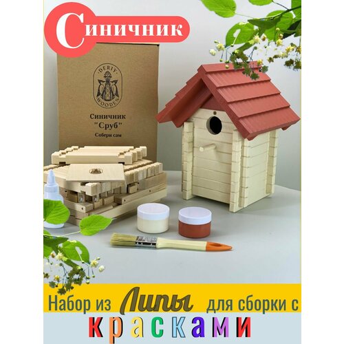 Синичник "Сруб", набор из липы для самостоятельной сборки. DERIYWOODEN