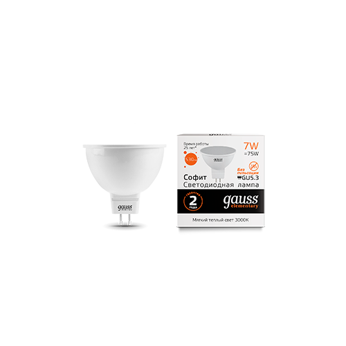 (10 шт.) Светодиодная лампочка Gauss Elementary MR16 GU10 7W(530lm) 3000K 2K 57х50 матовая, пластик/алюм. 13617