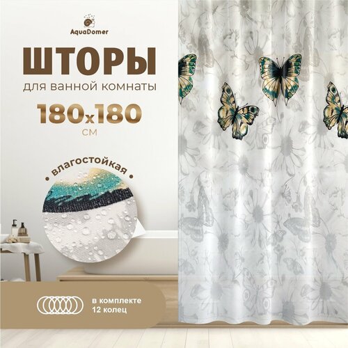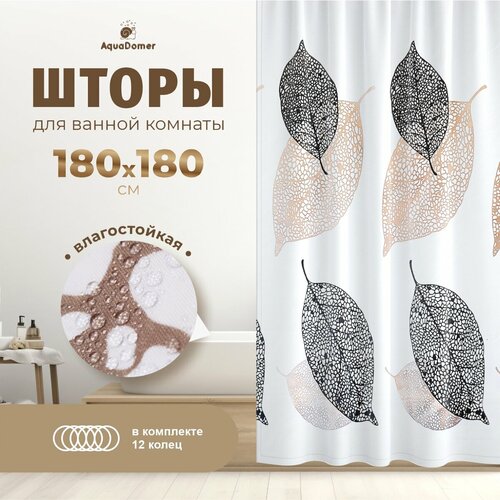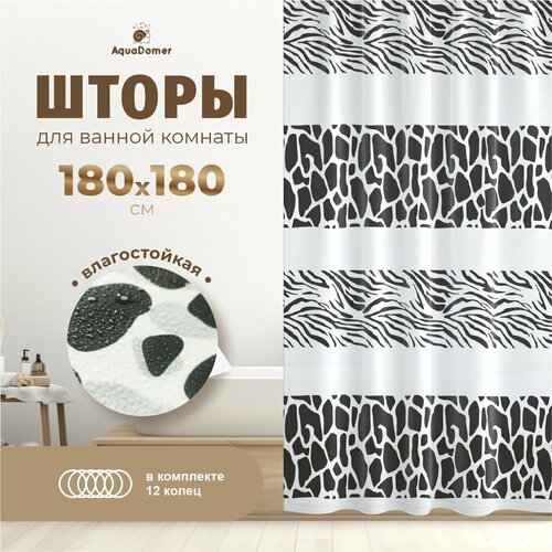 Штора для ванной комнаты 180x180 12 колец "Сафари" черно-белая