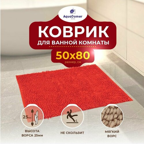 AquaDomer Коврик для ванной комнаты и туалета противоскользящий, цвет коралл, размер 50х80 см