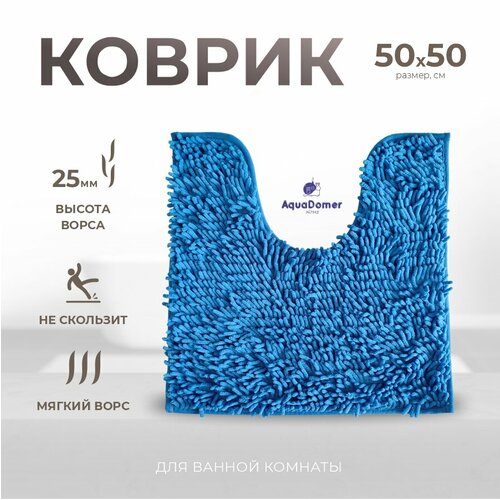 AquaDomer Коврик для туалета с вырезом 50х50 см противоскользящий, светло-синий