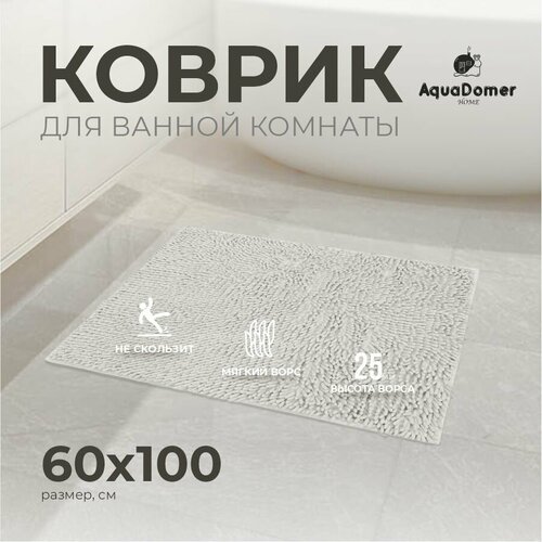AquaDomer Коврик для ванной комнаты и туалета противоскользящий, размер 60х100 см, серый