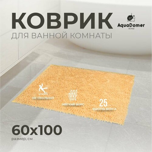 AquaDomer Коврик для ванной комнаты и туалета противоскользящий, размер 60х100 см, светло-бежевый