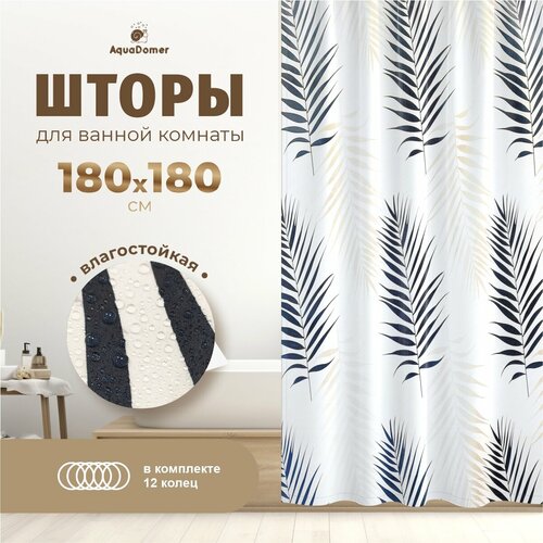 AquaDomer Штора для ванной комнаты непромокаемая тканевая с утяжелителем 180*180 чёрно-белый город