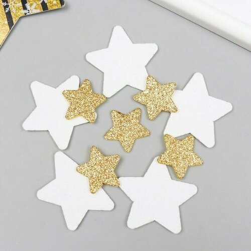 Декор Звезда белый, золотой фоам глиттер 5 и 3 см (набор 10 шт)