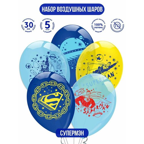Воздушные шарики для праздника ND Play. Супермен 30 см, 5 шт, 302337