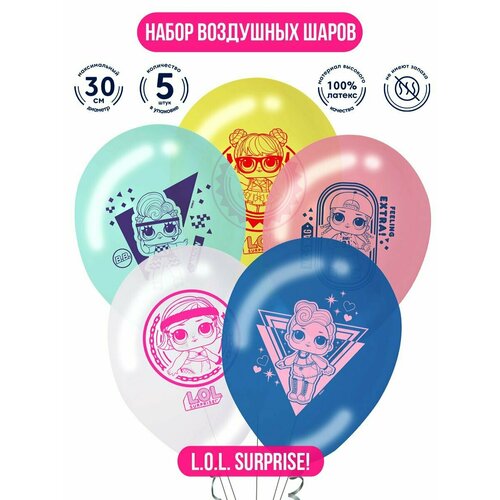 Воздушные шарики для праздника ND Play. LOL/ЛОЛ Surprise! 30 см, 5 шт, 300731
