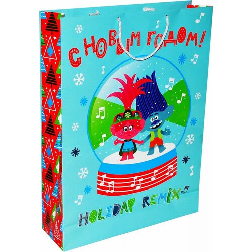 Пакет подарочный большой Тролли новогодние-5, 330x455x100 мм