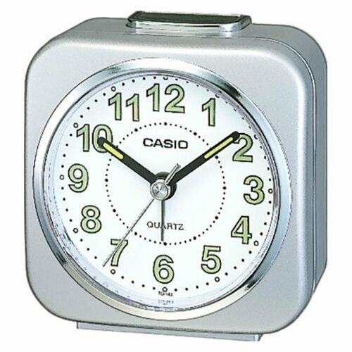 серебристыйБудильник настольный Casio TQ-143S-8 - компактного размера - с неоновым циферблатом обеспечивает длительную подсветку в темное время суток после короткого воздействия света.