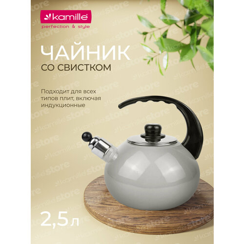 Чайник 2,5 л. эмалированный со свистком Kamille KM 1037 с черной бакелитовой ручкой (1037 /)