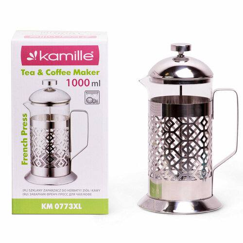 Френчпресс (1 л) нержавеющая сталь, стекло Kamille