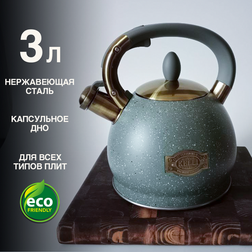 Чайник для плиты Kelli KL-4309 со свистком / 3 л / нержавеющая сталь