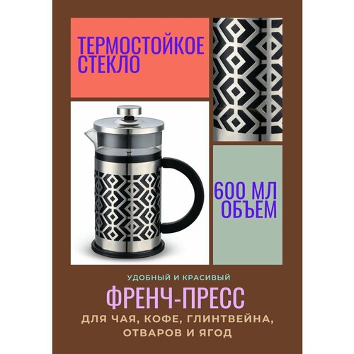 Френч-пресс, чайник заварочный стеклянный 600 мл