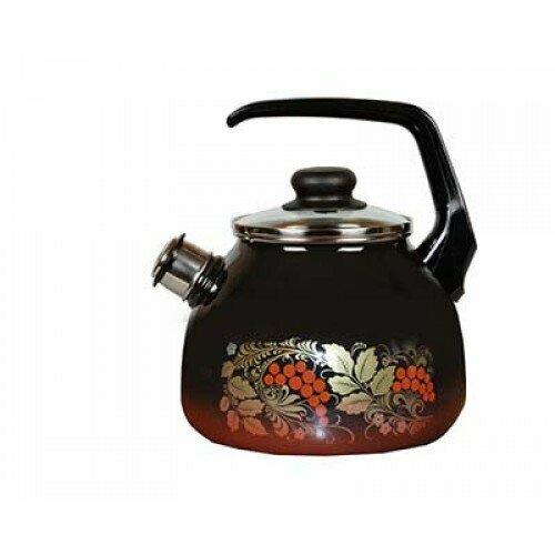 Чайник стальэмаль 3,0л сфер. со свист. Рябина черн-красн.
