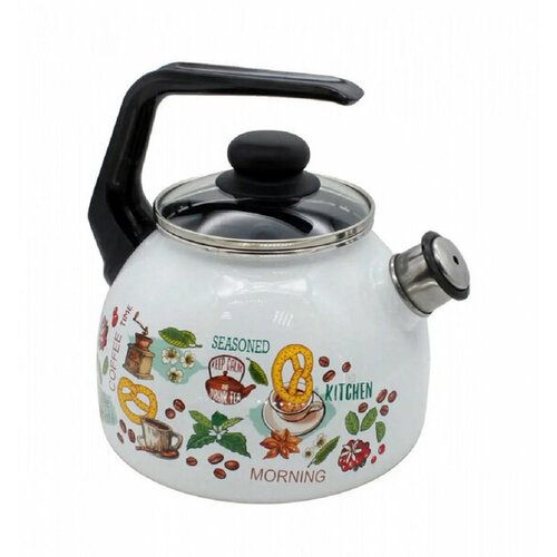 Чайник стальэмаль 3,0 л со св. утренний кофе бел 4с209я
