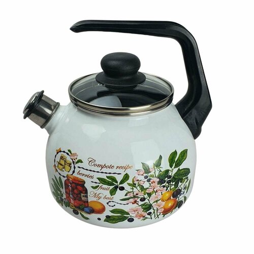 Чайник 3л сф. со свистком 4с209я Вкусный компот белосн. Эмалированная сталь стальэмаль