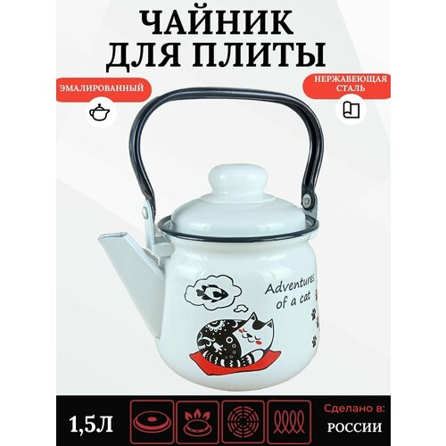 Чайник эмалированный "Коты" для плиты 1,5 л
