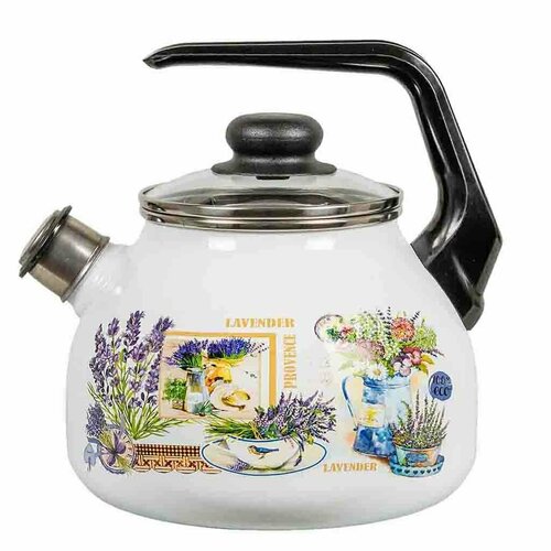 Чайник 3л сф. со свистком 4с209я Горная лаванда белосн. Эмалированная сталь стальэмаль
