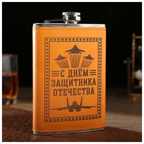 Фляжка 270 мл "С днём защитника Отечества", светло-коричневая, 9.5 х 2 х 14.5 см