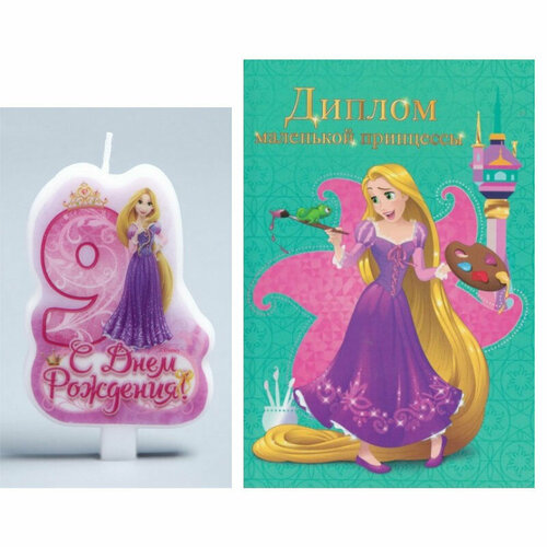 Свеча-цифра для торта «9», Принцесса Рапунцель и диплом