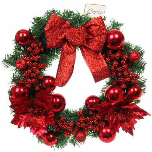 Венок хвойный «Сказочное украшение» d-40 см, ПВХ, Красный