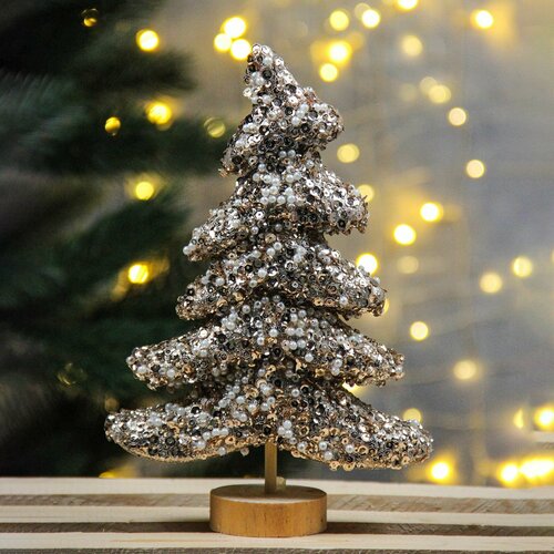 Новогодняя фигура Елочка на деревянной подставке 28см, бежевая