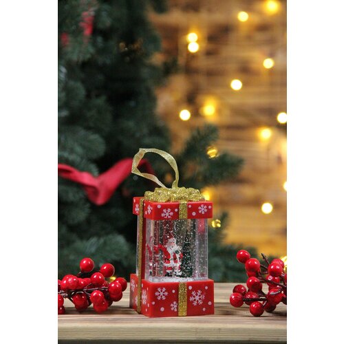 Светильник новогодний фонарь красный Подарок 11.5см, светящийся