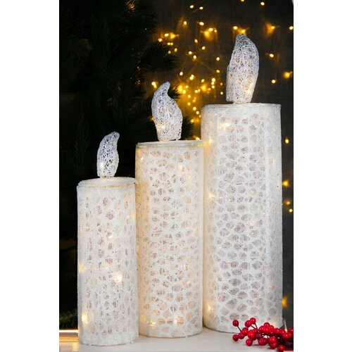 Новогоднее украшение для дома "Свечи" с гирляндой 3 шт, серебристые