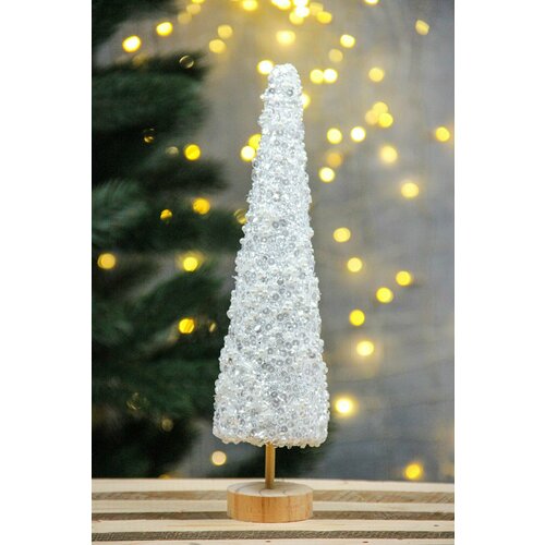 Новогодняя фигура Елочка конус на деревянной подставке 28см, белый