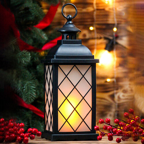 Светильник новогодний декоративный "Фонарь со свечками" 37см, светящийся, USB, черный