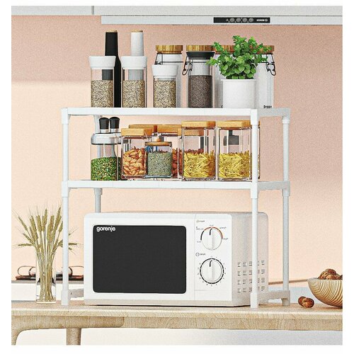 Полка пластиковая, двухъярусная, угловая c бортиками и выдвижным ящиком, белая, 20х20х51 см