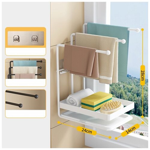 черныйДержатель настенный для полотенец с крючками белого цвета. Имеет 1 перекладину. Благодаря замечательному дизайну полотенцедержатель отлично впишется в любой интерьер - кухня, ванная комната, лоджия, кладовка и т. д. Самоклеющаяся основа надежно фиксируются на поверхность, в связи с этим рекомендует с заранее отметить точки установки на поверхности. Размер -50х7,5 см. Материал: металл, ПВХ