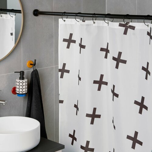 Штора для ванной комнаты VILINA водонепроницаемая с рисунком занавес с кольцами 180х180 см Диамант бежевая