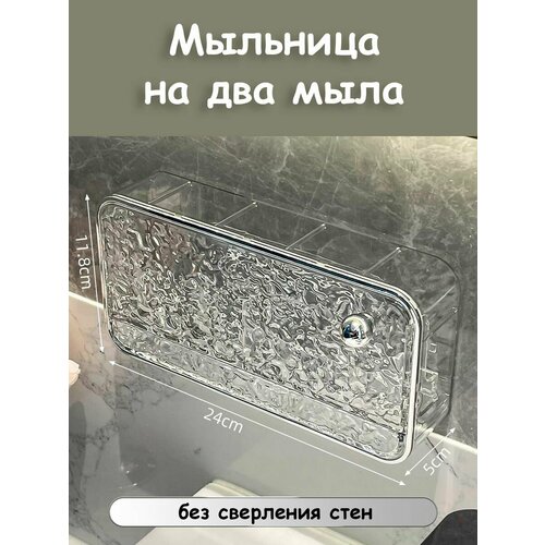 Мыльница на стену для ванной и кухни, прозрачная, двойная, из пластика, 300мл, 24х12х7,2см
