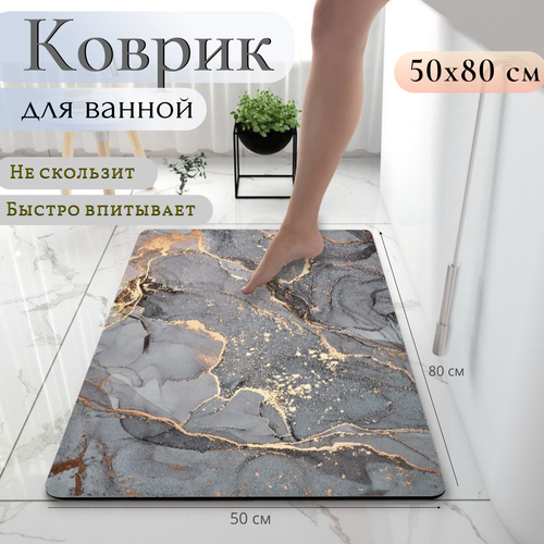 Коврик для ванной и туалета, коврик противоскользящий диатомитовый, 50 х 80 см, коврик серый мрамор, коврик под миску питомцев, прихожуюковрик в