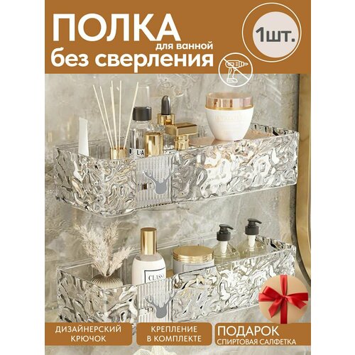 Полка для ванной без сверления прозрачная прямая, размер 28x11x6 см, moreso style, 1 шт